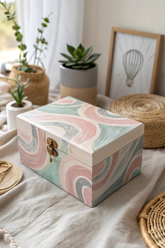 กล่องใส่เครื่องประดับไม้ทรงสี่เหลี่ยมผืนผ้าฝังเรซิ่น ดีไซน์สวยงาม งานฝีมือประณีต เหมาะสำหรับเก็บเครื่องประดับและของที่ระลึก ผลิตในอินเดีย