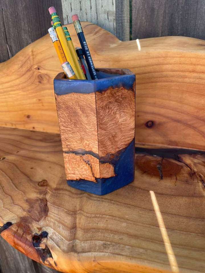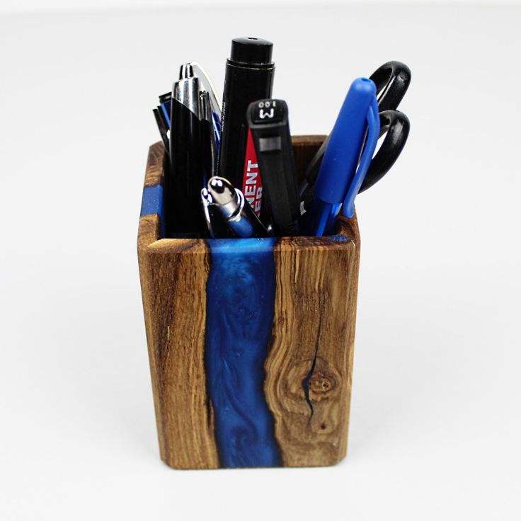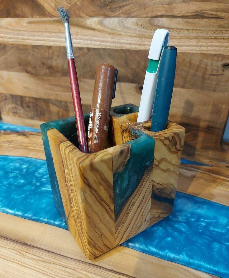 ที่ตั้งปากกาไม้และเรซินแบบมีสไตล์สำหรับโต๊ะที่ใส่ปากกาทำจากไม้เรซินและไม้ที่เป็นเอกลักษณ์สำหรับเครื่องใช้สำนักงาน