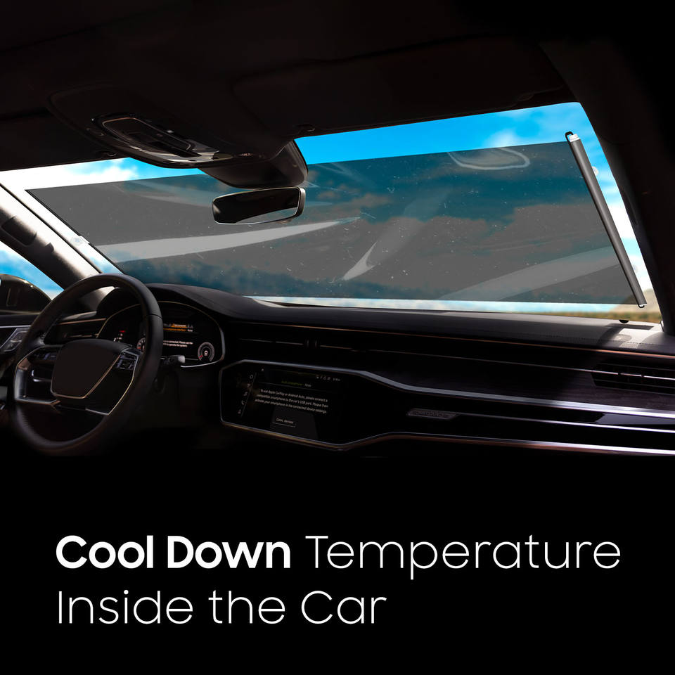 Roadpower Black Car Window Shade-Retractable Solar Control Film with UV Protection Helps Reduce Heat & Glare Inside The Vehicle