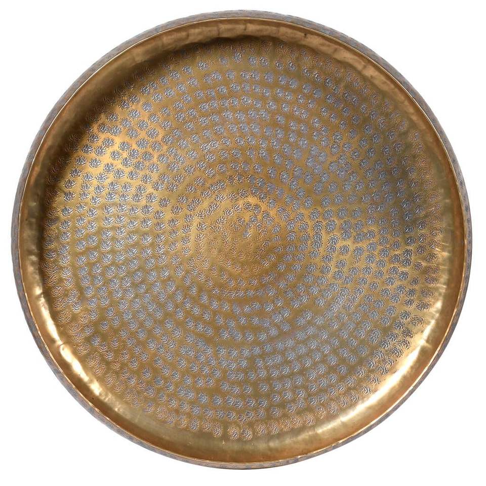 ถาดเสิร์ฟทรงกลมทองเหลืองดีไซน์สวย สำหรับวางกลางโต๊ะกาแฟและเสิร์ฟแขก พร้อมรูปลักษณ์เงางาม