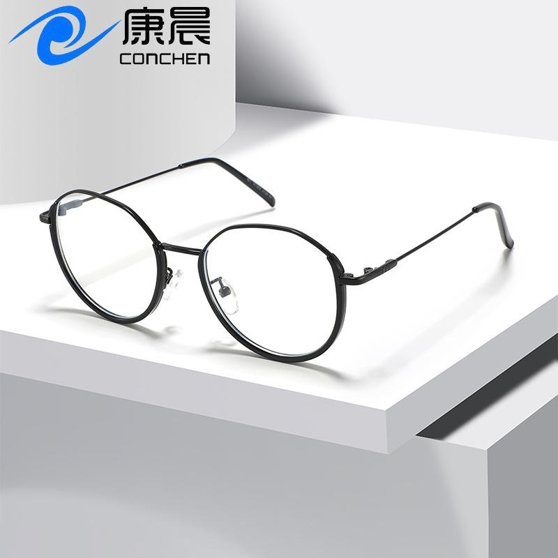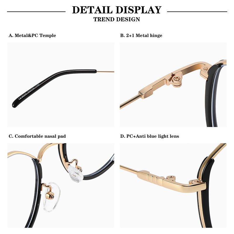 กรอบแว่นตาโลหะทรงกลมมีสไตล์สำหรับผู้หญิงป้องกันแสงสีฟ้าแว่นสายตาแบบเต็มกรอบ 6210
