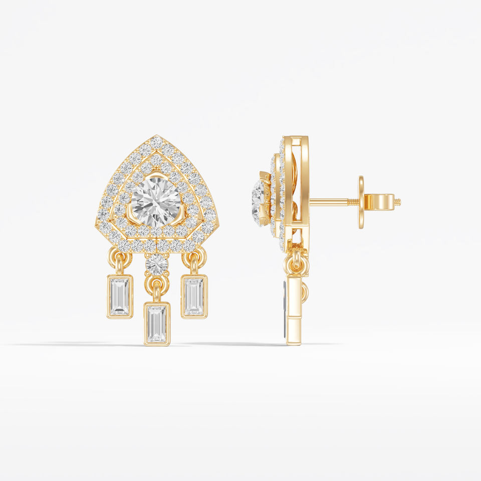 ต่างหูเพชรรูปตะปูเกลียวที่มีสไตล์พร้อมจี้กลมและบาแกตต์เครื่องประดับสำหรับใส่ประจำวัน