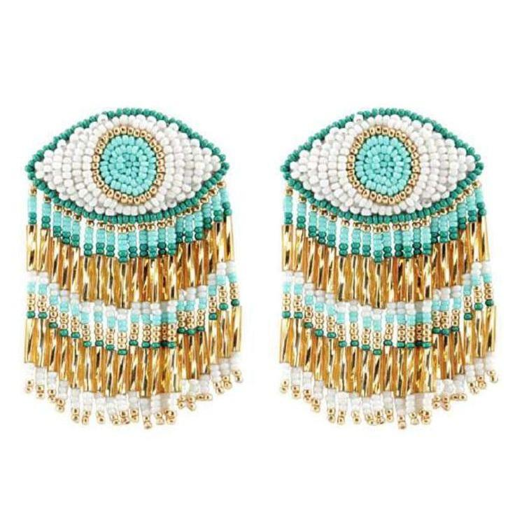 ต่างหูห้อยประดับลูกปัดเม็ดเล็กเก๋ไก๋ งานปักมือสีสันสดใส ดีไซน์สีสันตามสั่ง สวยหรู ทำด้วยมือ เหมาะสำหรับทุกเพศ เป็นของขวัญ เครื่องประดับแฟชั่น