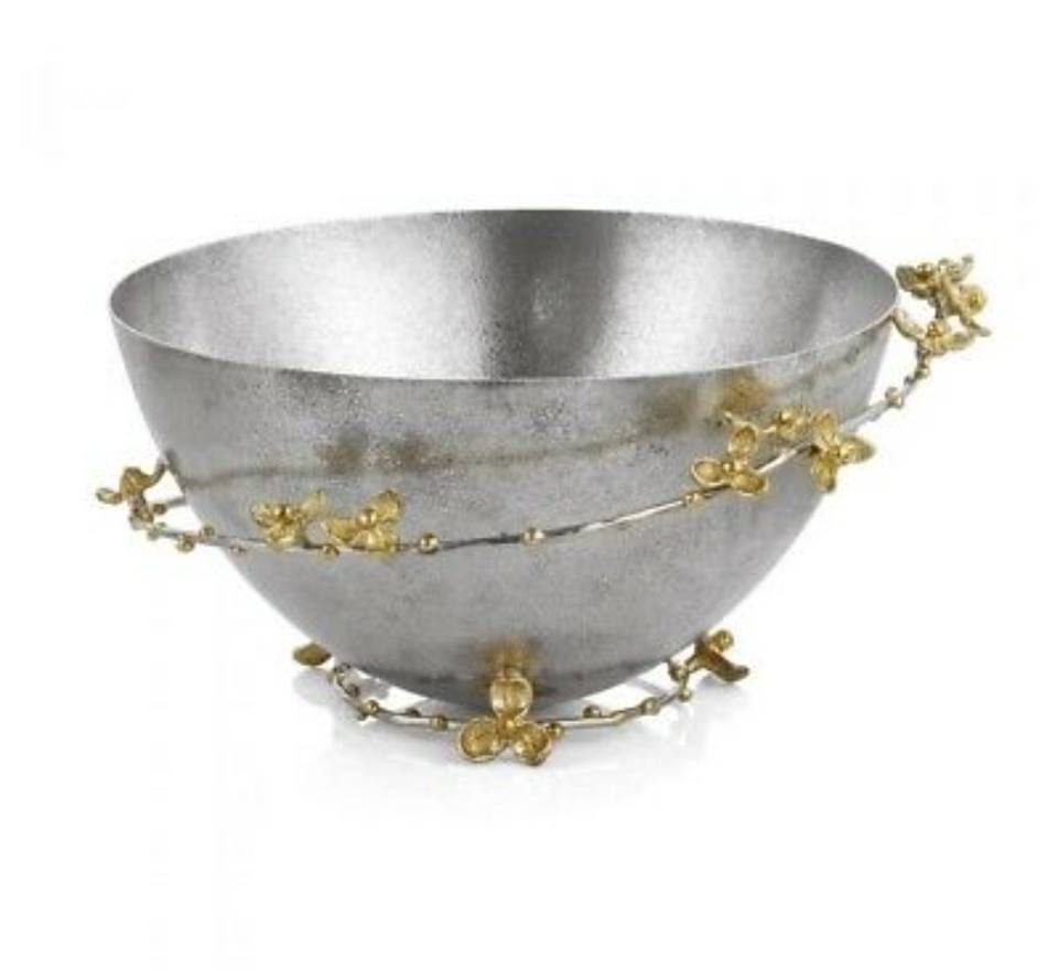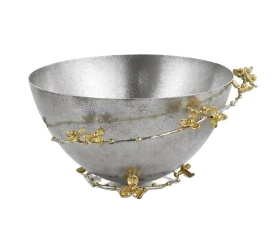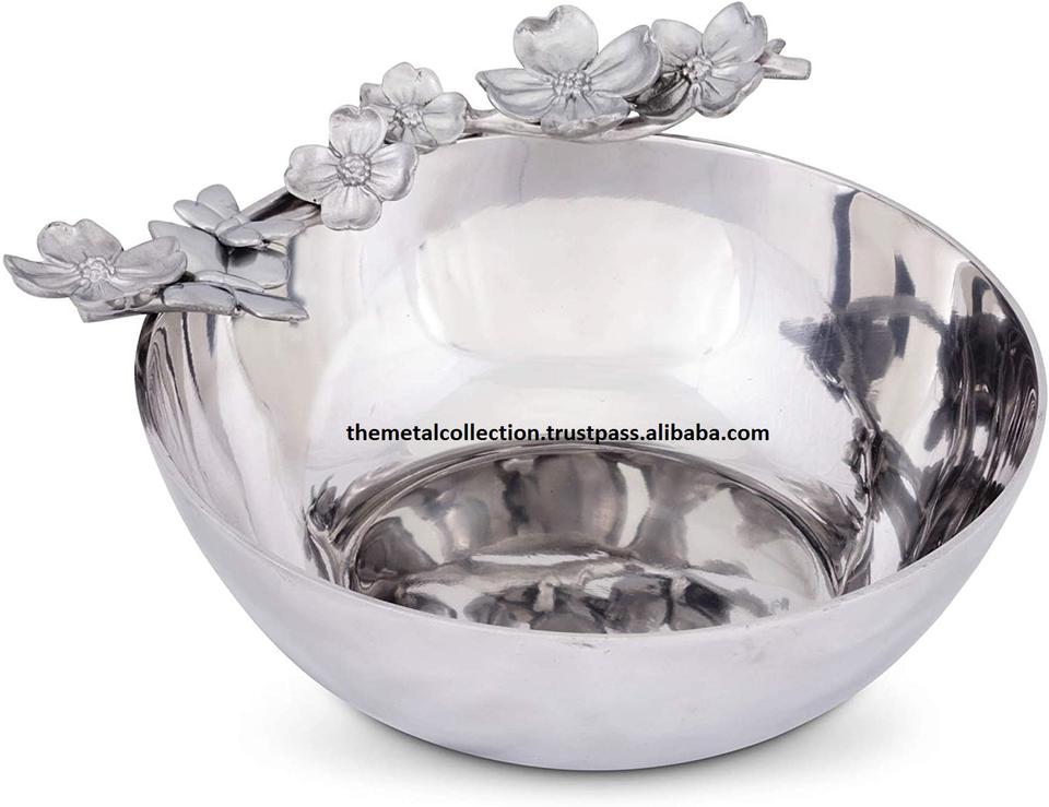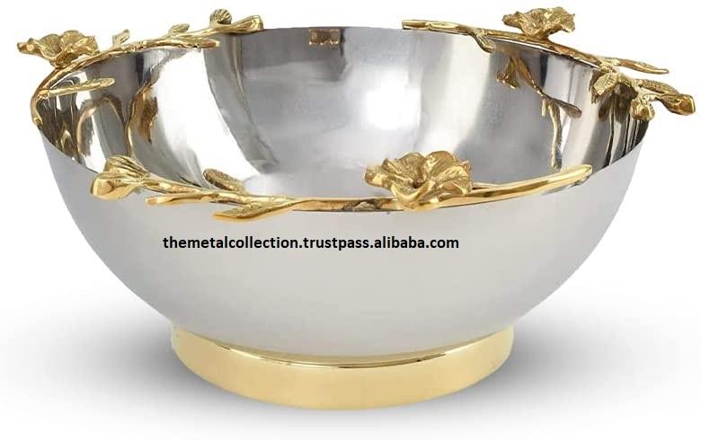 ชามเสิร์ฟมีสไตล์สีเงินตกแต่งด้วยกล้วยไม้ชุบทองสำหรับบ้านโรงแรมชามผลไม้ตกแต่งชามสลัดโลหะดีไซน์ทันสมัย