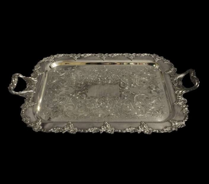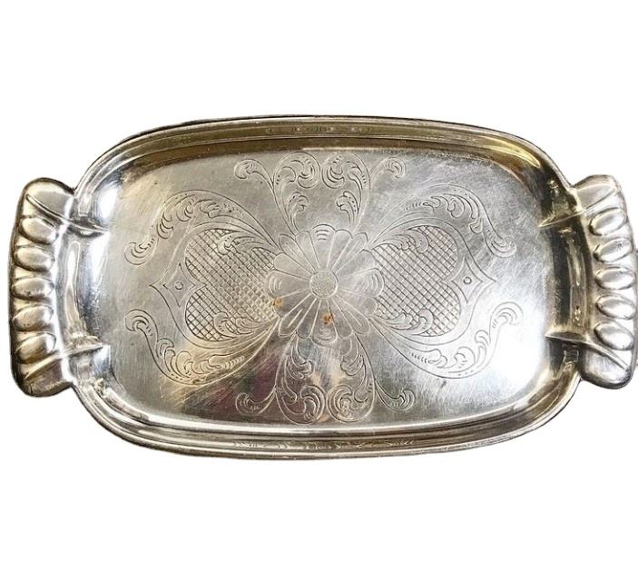 ถาดเสิร์ฟอาหารแบบมีสไตล์สำหรับบ้านโรงแรมร้านอาหารเครื่องครัวอุปกรณ์รับประทานอาหารจานเสิร์ฟถาดโลหะชุบเงินถาดใส่กาแฟ