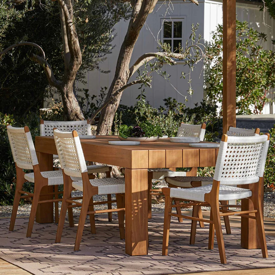 ชื่อผลิตภัณฑ์:ชุดโต๊ะรับประทานอาหารกลางแจ้งแบบมีสไตล์เก้าอี้ไม้สักหวาย