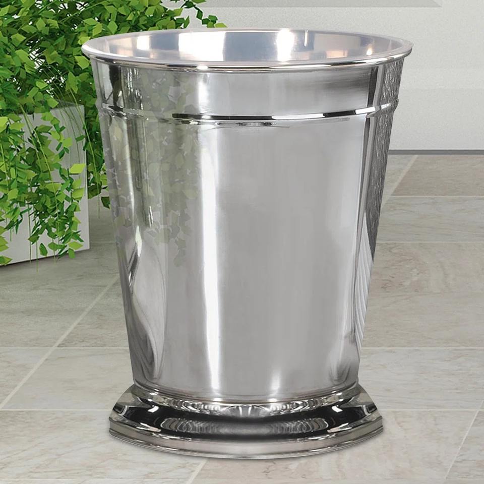 ถังขยะโลหะสีเงินทันสมัย เหมาะสำหรับใช้ในสำนักงาน ห้องทำงาน ห้องอ่านหนังสือ และพื้นที่ทำงาน หรือใช้ในบ้านทุกวัน ผลิตด้วยมือจากอินเดีย