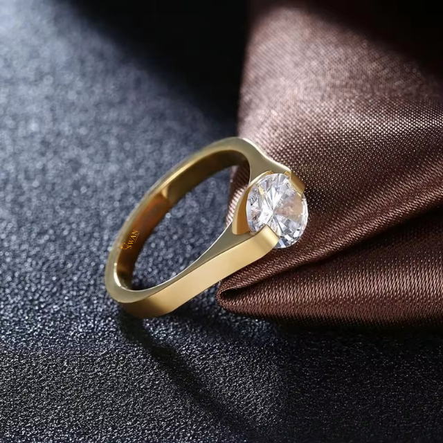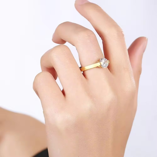 แหวนพลอยทำจากสเตนเลสสตีลของผู้หญิงได้รับการรับรองจากห้องแล็บเดียวมีสไตล์
