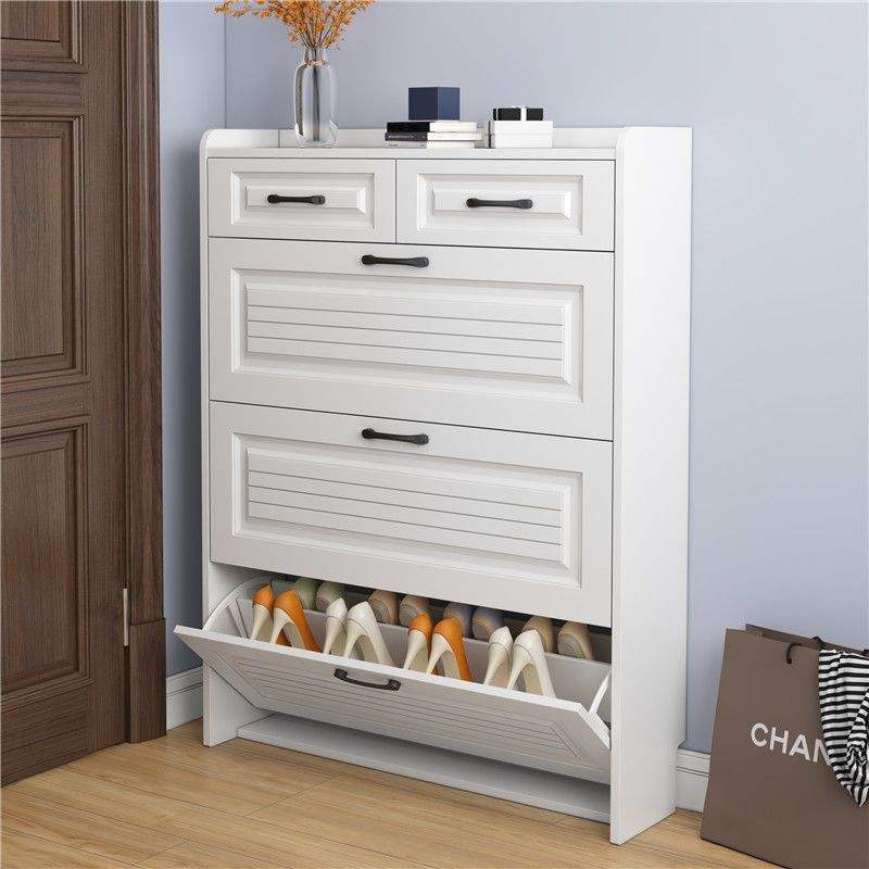 ตู้เก็บรองเท้าสามชั้นที่ทันสมัยและเรียบง่าย ตู้เก็บรองเท้าบางเฉียบสไตล์มินิมอลที่ทันสมัยสำหรับทางเข้า