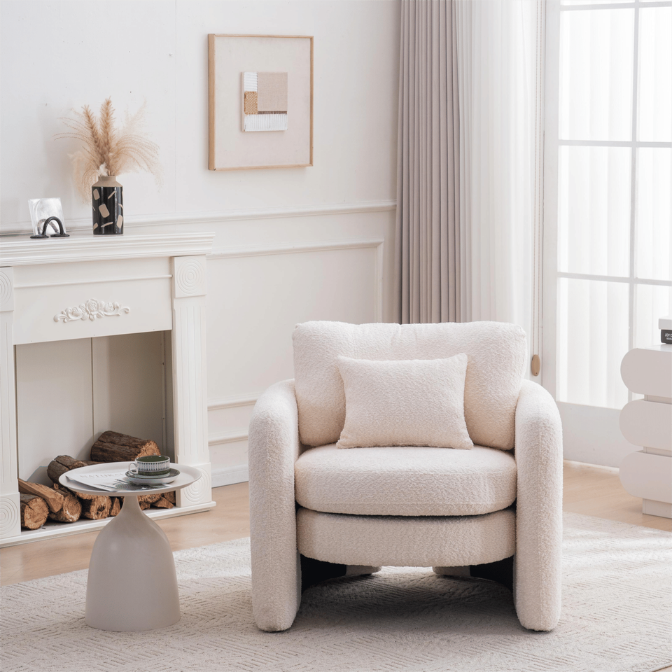 เก้าอี้ที่นั่งเดี่ยวทันสมัยพร้อมมุมโค้งมนสีเบจ-สำหรับหลายๆสถานการณ์สำหรับพื้นที่นั่งเล่นที่ทันสมัย