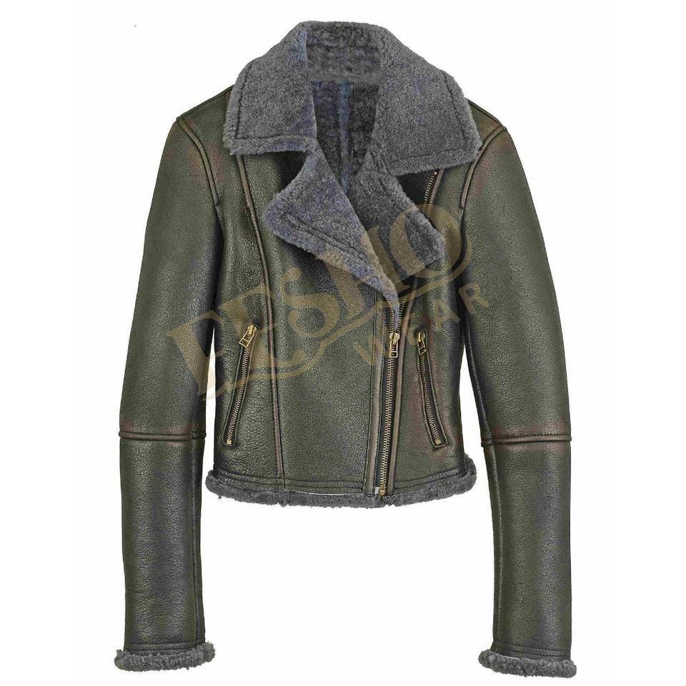 แจ็คเก็ตหนังสำหรับผู้หญิง:ทำจากหนังแกะแท้ shearling