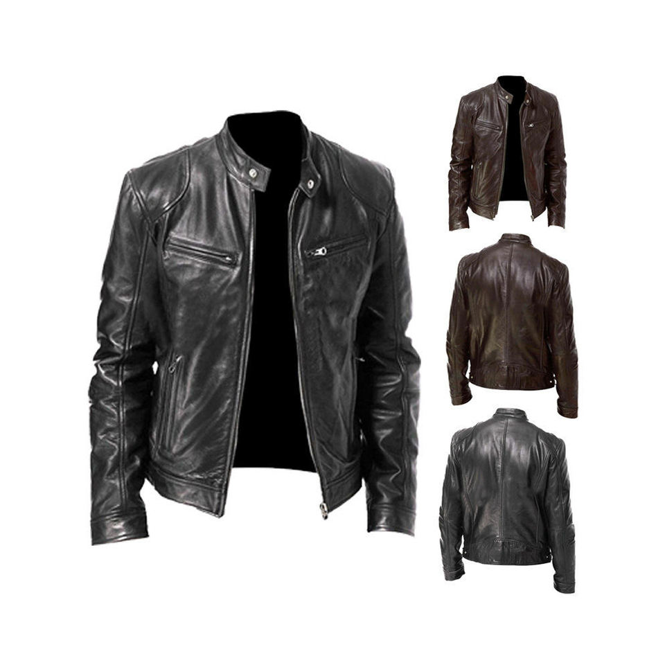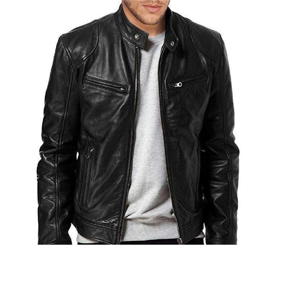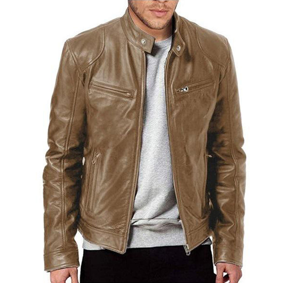 แจ็กเก็ตหนังวัวแท้ของผู้ชายทรงสลิมฟิตเสื้อโค้ทฤดูหนาวออกแบบได้ตามต้องการสำหรับนักขี่จักรยาน