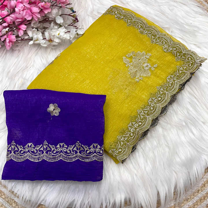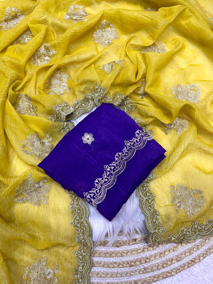 ส่าหรีผ้าไหมเนื้อนุ่มมีสไตล์สีเหลืองสำหรับเจ้าสาวชุดปาร์ตี้งานแต่งงานพร้อมเสื้อแฟนซีสุดพิเศษสำหรับผู้หญิง