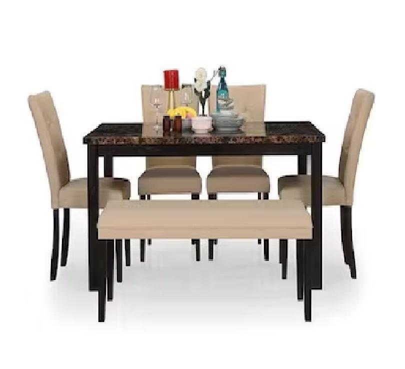 ชุดโต๊ะอาหารไม้เนื้อแข็งทรงสี่เหลี่ยม ดีไซน์ทันสมัย พร้อมเก้าอี้เบาะนุ่มแบบมีพนักพิง 6 ที่นั่ง สำหรับการจัดโต๊ะอาหารที่ประหยัดพื้นที่และสะดวกสบาย