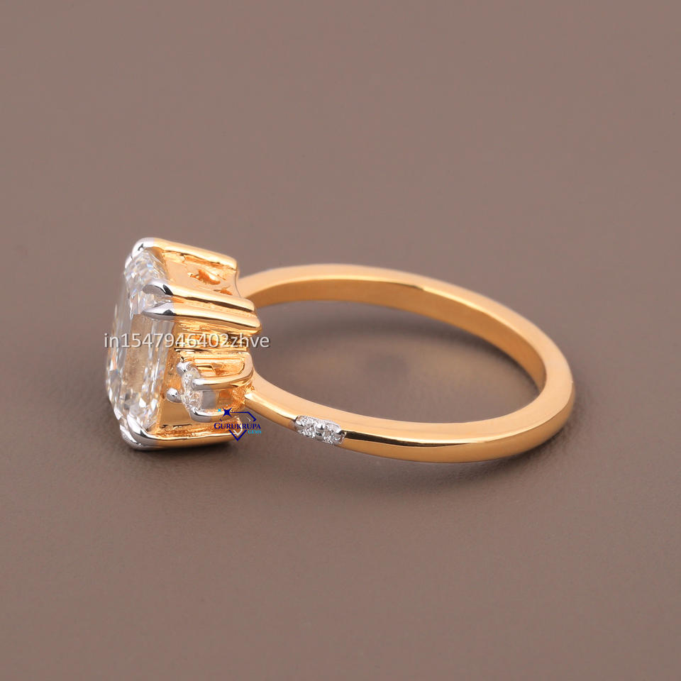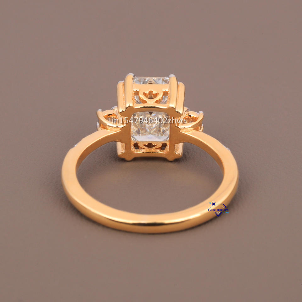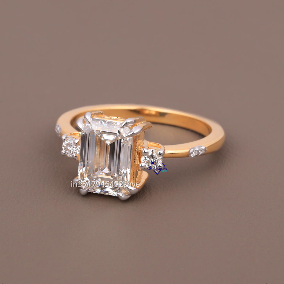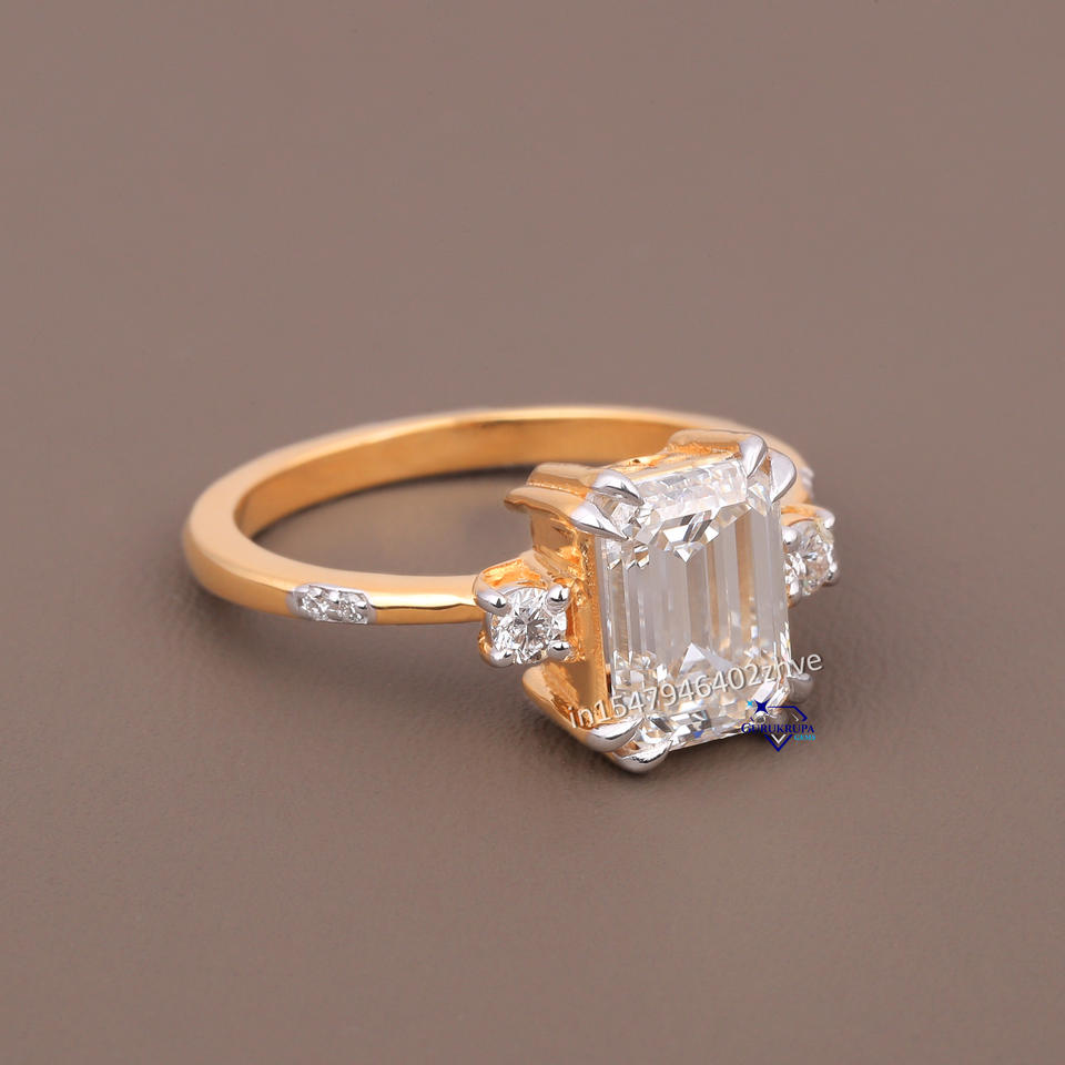 แหวนหมั้นทองคำขาว 14 กะรัต ประดับมรกตทรงโซลิแทร์ 2.55 กะรัต และเพชรโมอิสซาไนต์ทรงกลม ดีไซน์ทันสมัยสำหรับผู้หญิง