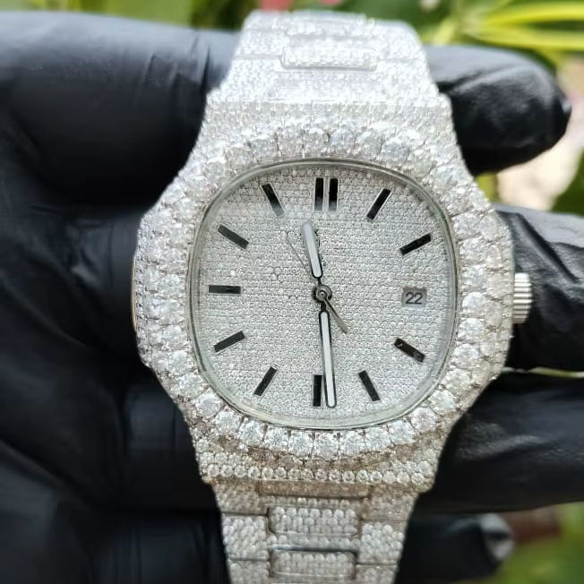 นาฬิกาอัตโนมัติรุ่นลิมิเต็ดอิดิชั่น ดีไซน์สี่เหลี่ยมสุดหรู สไตล์ฮิปฮอป ประดับเพชรโมอิสซาไนต์เต็มเรือน