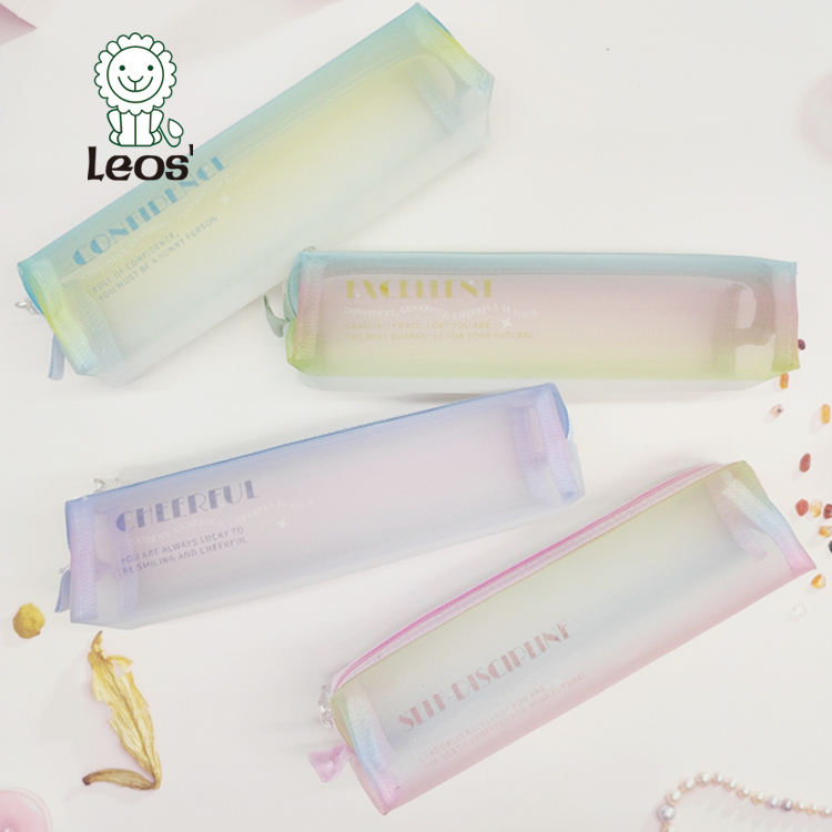 กระเป๋าตาข่ายไนลอนทรงสี่เหลี่ยมมีสไตล์มีสีไล่ระดับสีสะดวกสำหรับใส่ดินสอไปโรงเรียนและที่เก็บแปรงแต่งหน้า