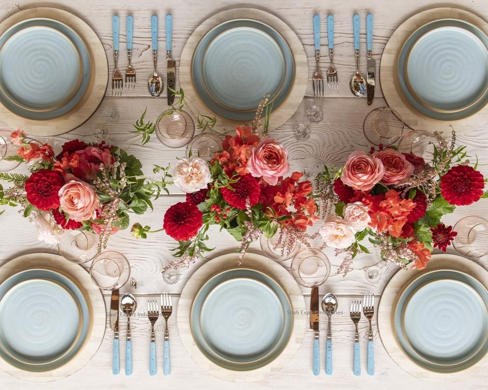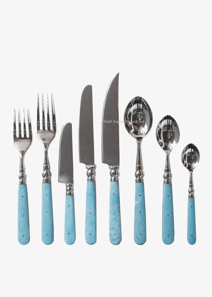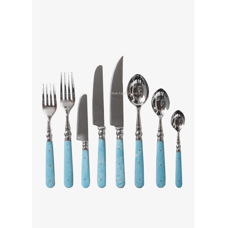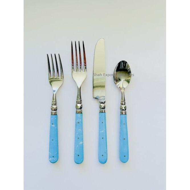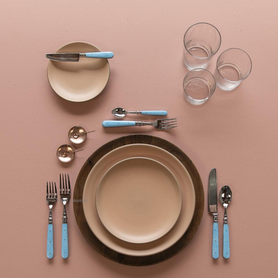 ชุดช้อนส้อมสแตนเลสมีสไตล์พร้อมที่จับกระดูกสีฟ้าสำหรับบ้านและงานแต่งงาน