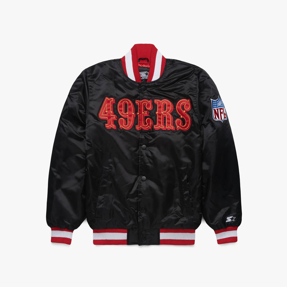 แจ็คเก็ตสีดำซาติน 49ers รุ่น Starter สไตล์ Blackout - รุ่นลิมิเต็ดอิดิชั่น แจ็คเก็ตสีดำ 49ers รุ่น Starter แจ็คเก็ตซาติน