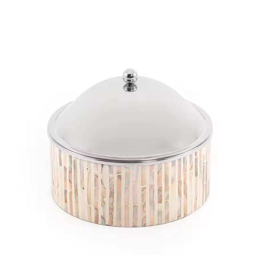 หม้อร้อนเหล็กที่มีสไตล์พร้อมฝาปิดเนื้อเงินค้อนและมือจับที่สมบูรณ์แบบสำหรับการเสิร์ฟอาหารด้วยการสัมผัสที่ทันสมัยคลาสสิก