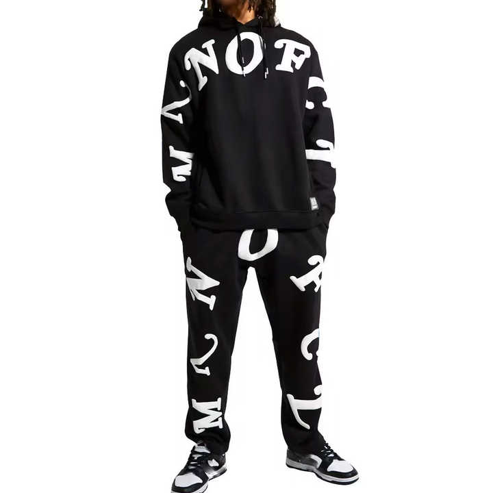 ชุดวอร์มพิมพ์ลายพัฟสำหรับผู้หญิงผ้าคอตตอนผ้าฟลีซ2ชิ้นแนวสตรีทแบบมีสไตล์
