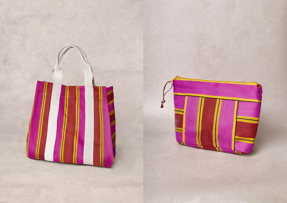Product name:Recycled Nylon Striped Pattern Cosmetic Pouch