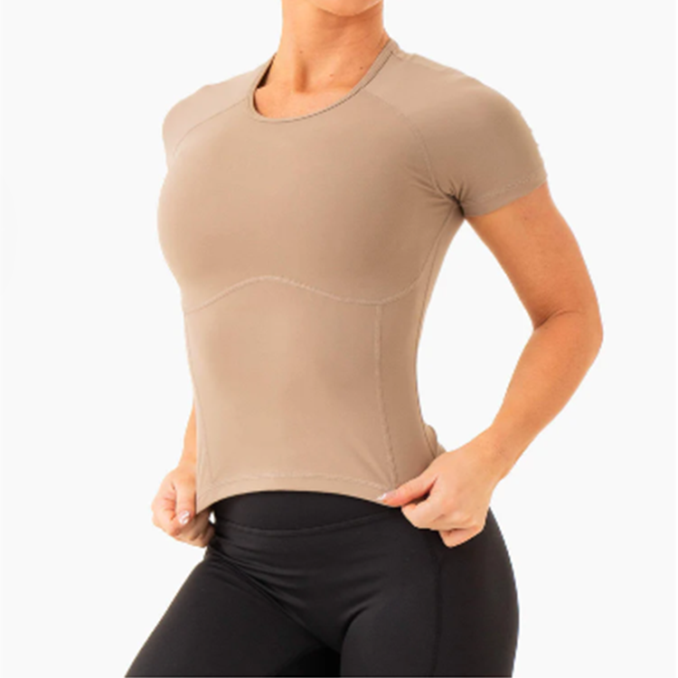 เสื้อยืดแฟชั่นสำหรับเด็กผู้หญิง เสื้อผ้าสำหรับสุภาพสตรี ราคาขายส่ง ผ้าฝ้าย 100% สีเขียวอ่อน คอกลม