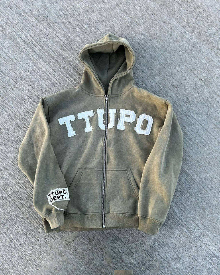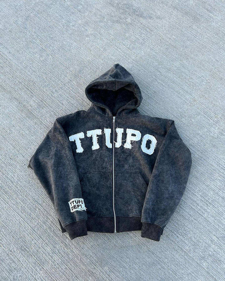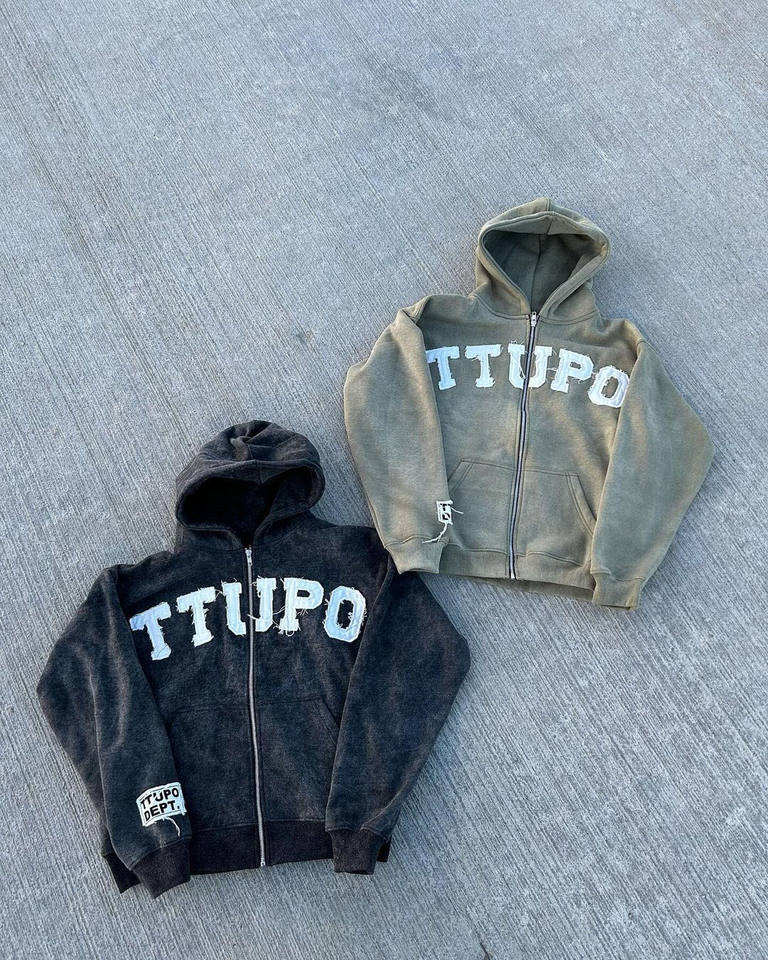Stylish TTUPO Full-Zip Greek Hoodies for Men & Women, Casual Vintage Washed Sweatshirts with Hood, Comfortable & Durable