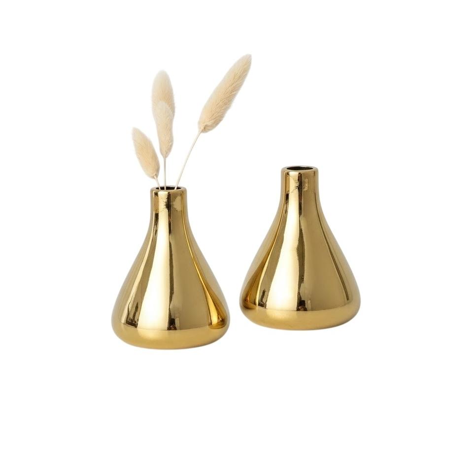 แจกันดอกไม้ทรงทันสมัยเคลือบทองแดง ชุดแจกันขนาดเล็ก 2 ใบ สำหรับตกแต่งบ้าน สำนักงาน โต๊ะทำงาน งานแต่งงาน