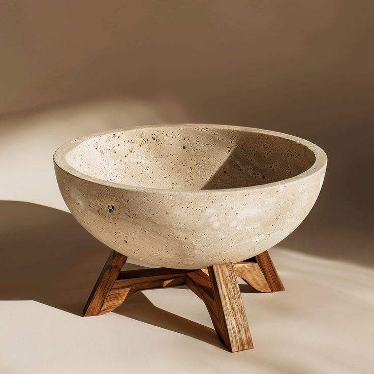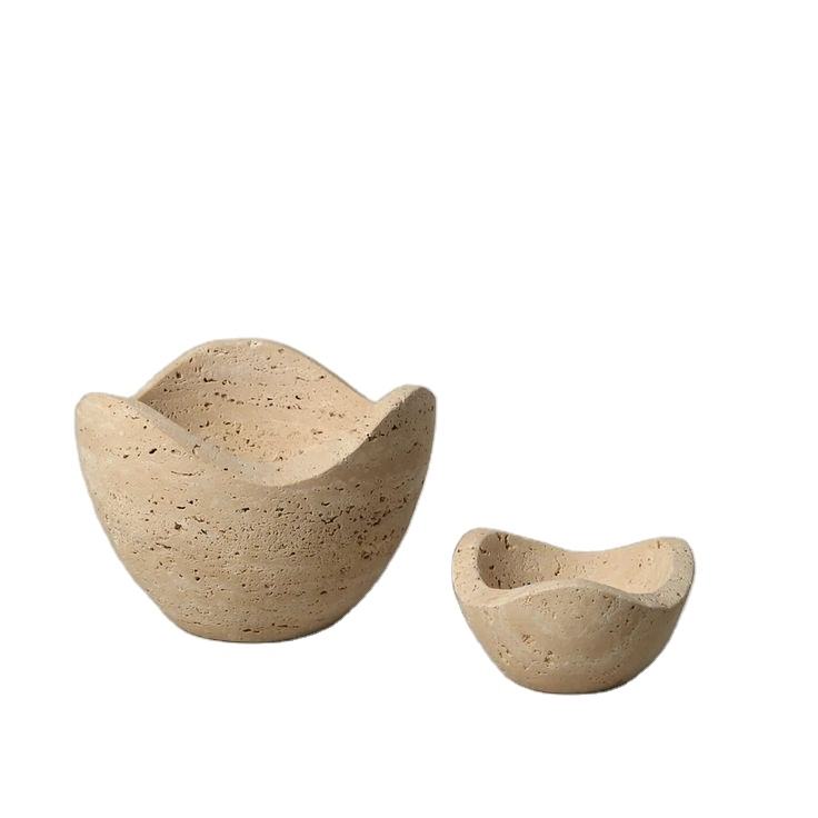 ชุดชามหินทราเวอร์ทีนดีไซน์ทันสมัย 2 ใบ เหมาะสำหรับตกแต่งบ้านสไตล์โมเดิร์น ดีไซน์มินิมอล สีเบจธรรมชาติ
