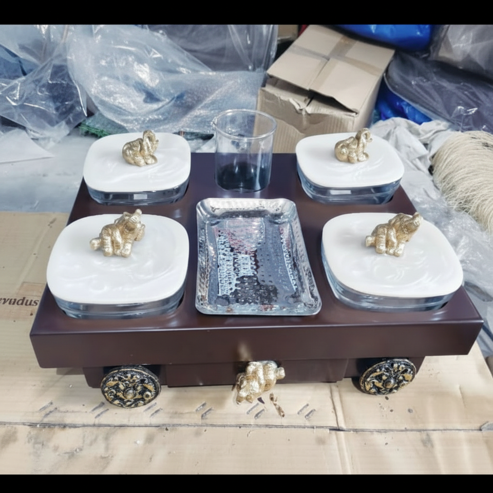 ถาดเสิร์ฟไม้หรูหราพร้อมโถสำหรับงานเลี้ยงพิเศษของคุณ