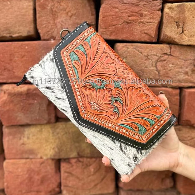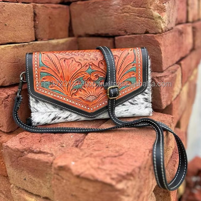 Product name:Hand Tooled Cowhide Leather Crossbody Wallet
