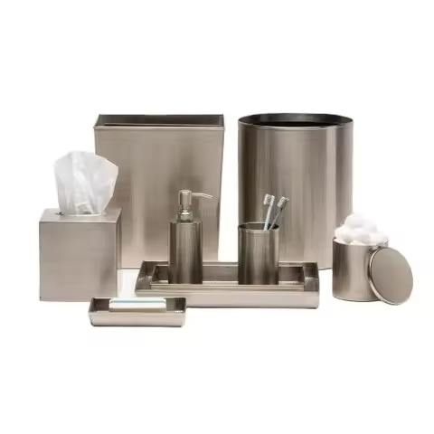 ชุดอุปกรณ์ห้องน้ำโลหะดีไซน์ทันสมัยพร้อมที่ปั๊มสบู่และที่ใส่แปรง