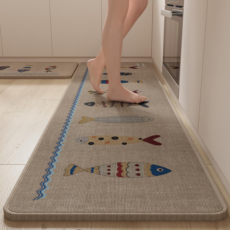 พรมปูพื้นครัวลายทอเก๋ไก๋ รูปทรงสี่เหลี่ยมผืนผ้า กันลื่น ลายผ้าลินินเทียม ลวดลายแปลกใหม่ ซักเครื่องได้ หนานุ่ม ซึมซับน้ำได้ดี