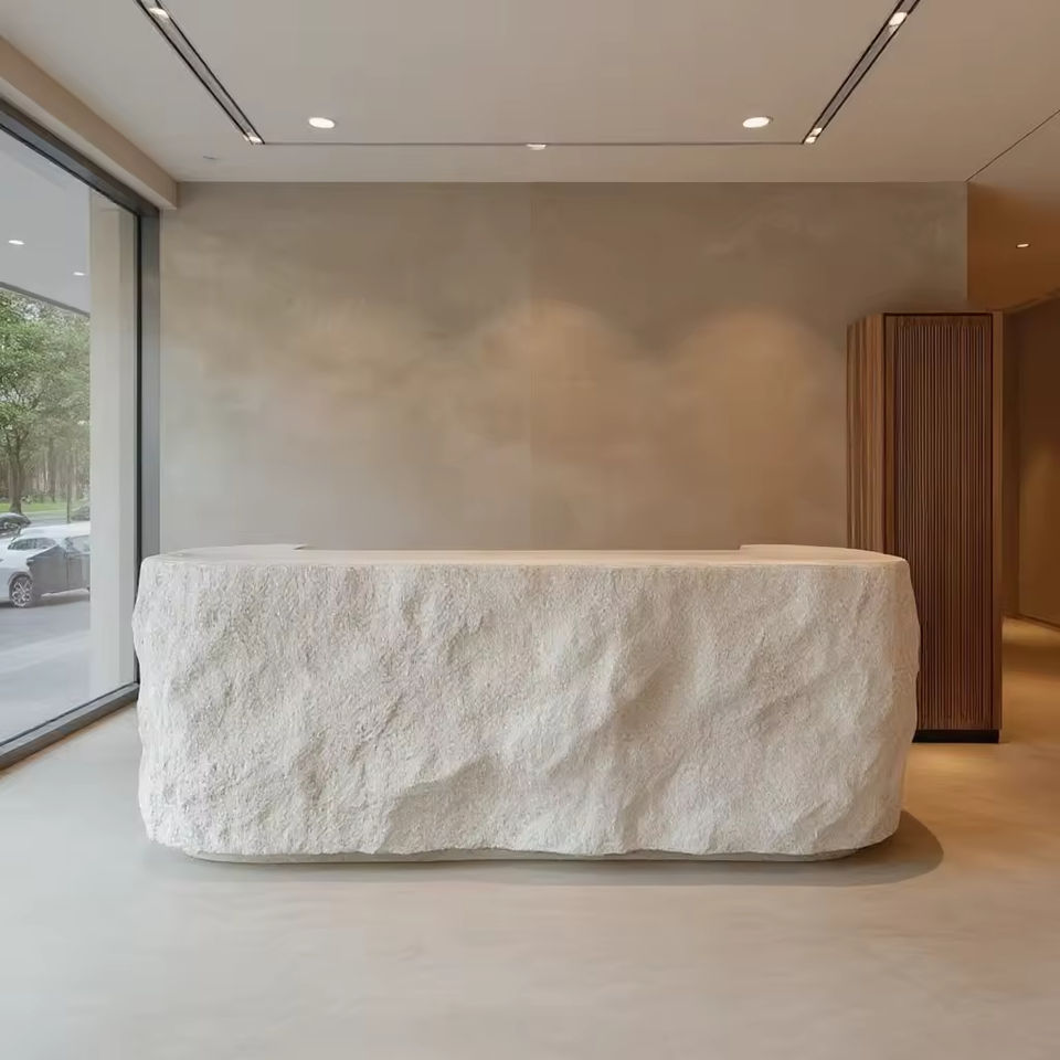 เคาน์เตอร์ต้อนรับโค้งสีขาวทันสมัย พร้อมไฟ LED ใต้เคาน์เตอร์ในตัว สำหรับใช้ในธุรกิจ