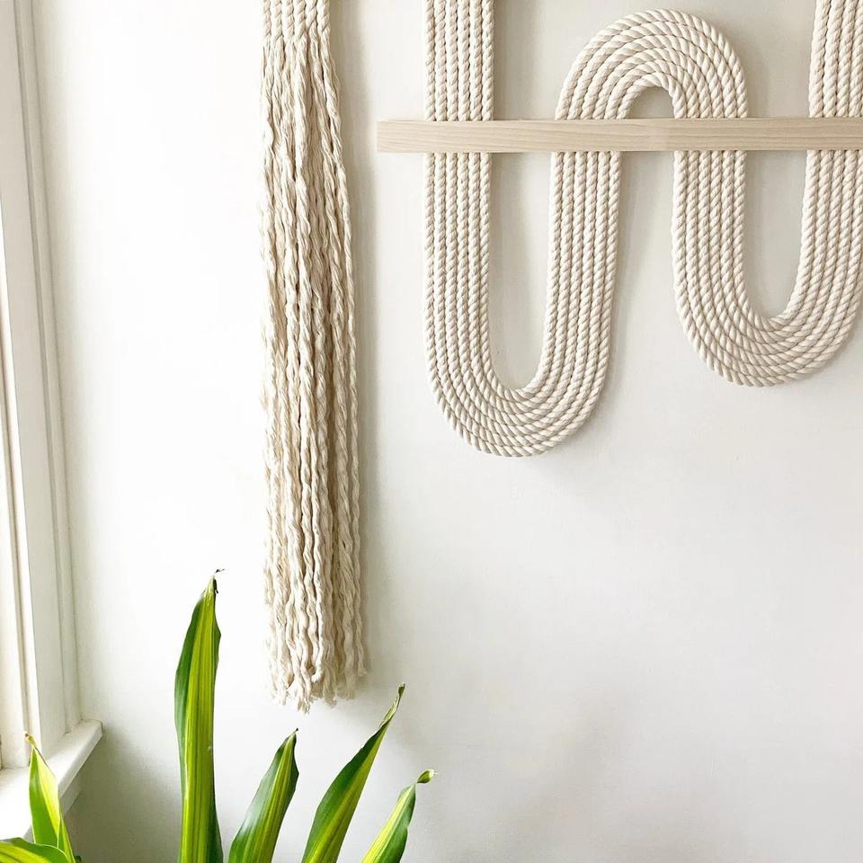 แขวนผนัง macrame สีขาวที่มีสไตล์สำหรับตกแต่งบ้านที่ทันสมัยห้องนอนห้องนั่งเล่นและตกแต่งผนังภายในที่เรียบง่ายหรูหรา