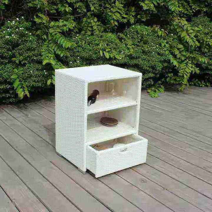 Stylish White Poly Rattan Cabinet for Outdoor and Indoor Storage