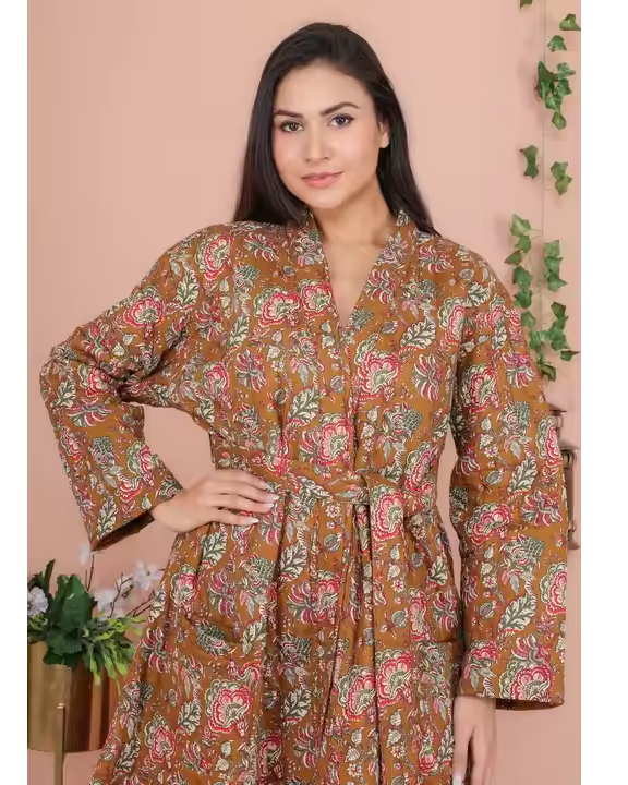 ชุดกิโมโนผ้าควิลท์ผ้าฝ้ายพิมพ์ลายสำหรับฤดูหนาว