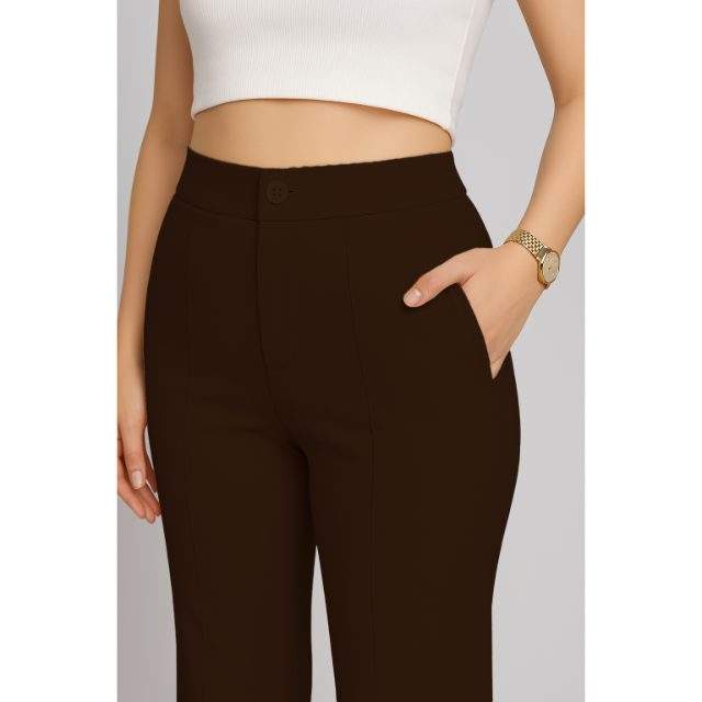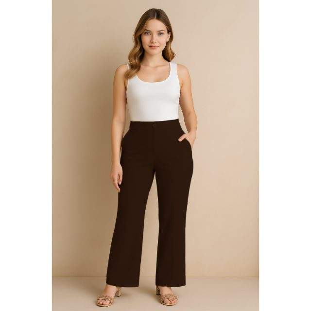 Fit Type: Flared Fit,,, Waist Type: High Waist,,, Fabric: Soft Stretchable Woven Fabric,,, Length: Full Length approx 40 inches,,, Closure: Elastic Waistband & Button and Zip as per requirement,,, Pattern: Solid Plain,,, Stitching: Durable Double Stitch Construction,,, Fabric Features: Soft Touch Comfortable Breathable Skin Friendly,,, Wash Type: Normal Wash Machine Friendly,,, Usage: Daily Wear Office Wear Casual Outings Travel Wear,,, Available Sizes: S to 5xl (26 to 40),,, Colors Available: Black, White, Beige, Brown, Lavender, Wine, Navy Blue, Grey, Bottle Green,,, Customization: Label PU Patch Logo Tag and Packaging Available,,,