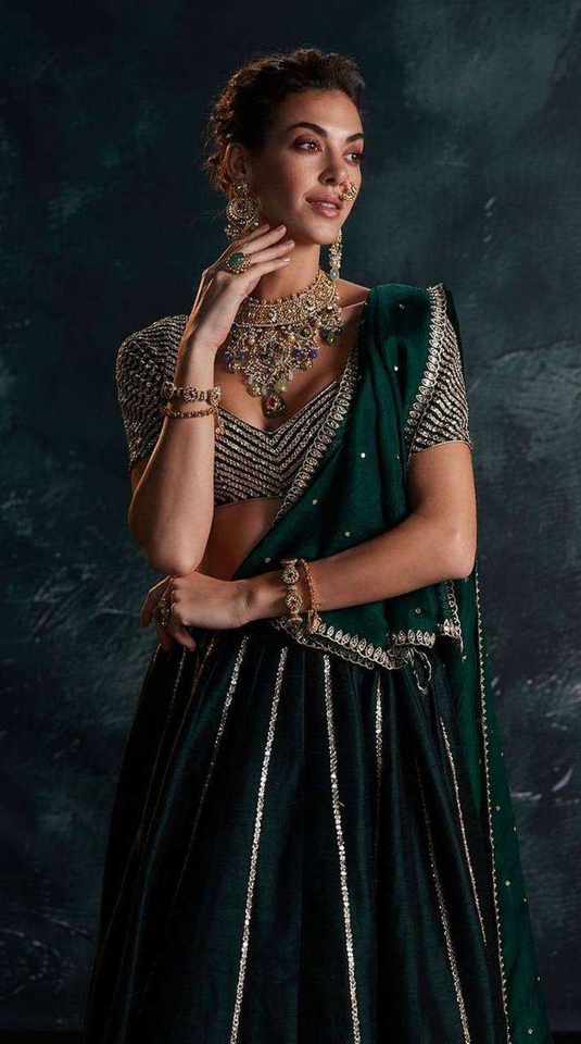 ชุดเลเฮนกาโชลีผู้หญิงทันสมัยพร้อมผ้าคลุมไหล่ ออกแบบมาสำหรับเทศกาล งานสันจีต งานหมั้น และงานเฉลิมฉลองทางวัฒนธรรม