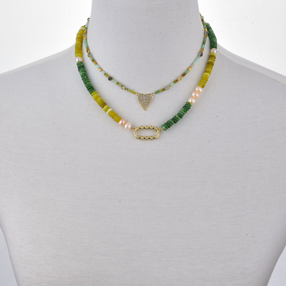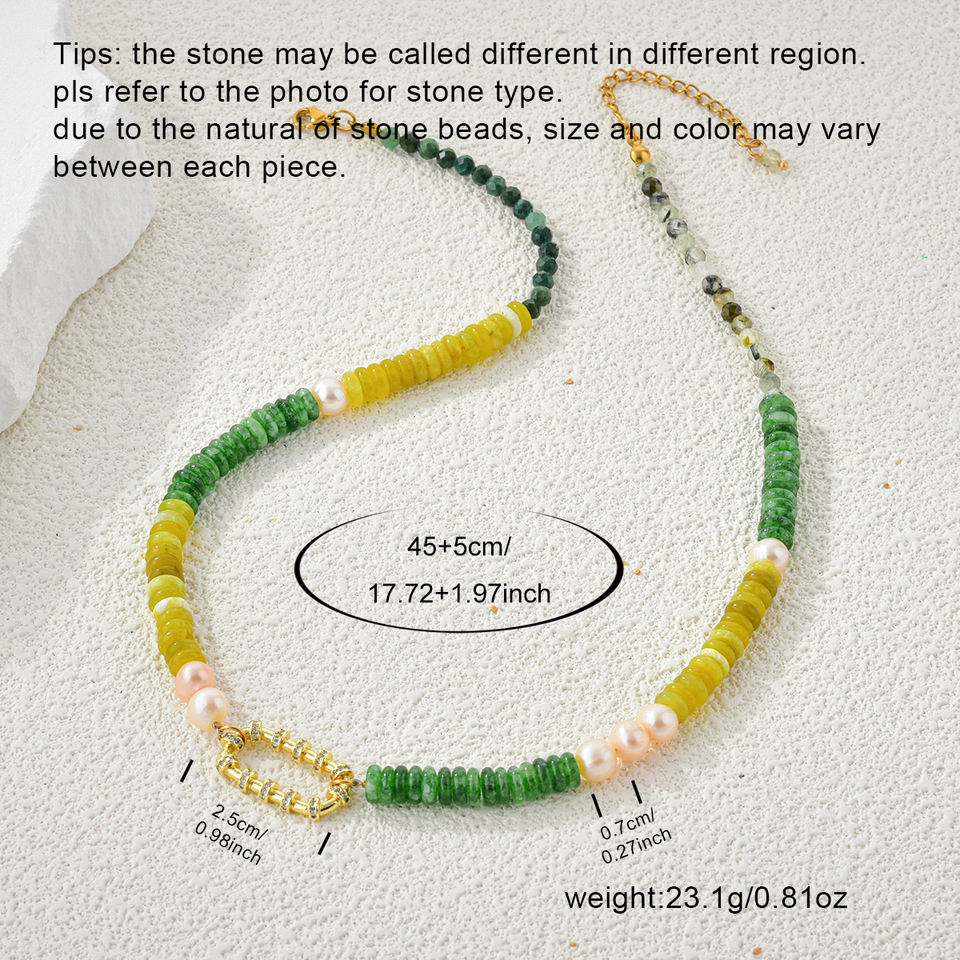สร้อยคอลูกปัดชั้นแฟชั่นสไตล์โบฮีเมียนสำหรับผู้หญิงที่มีสไตล์สร้อยคอลูกปัดสีเขียวและลูกปัดมุกสีชมพูสง่างาม