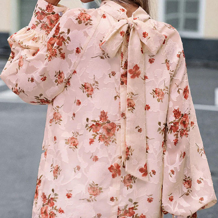 เสื้อเบลาส์ผ้าชีฟองมีสไตล์ของผู้หญิงพิมพ์ลายดอกไม้ปกแมนดารินคอเสื้อลำลองสุดเพอร์เฟกต์ฤดูร้อนเสื้อลายดอกไม้อินเทรนด์สำหรับผู้หญิง