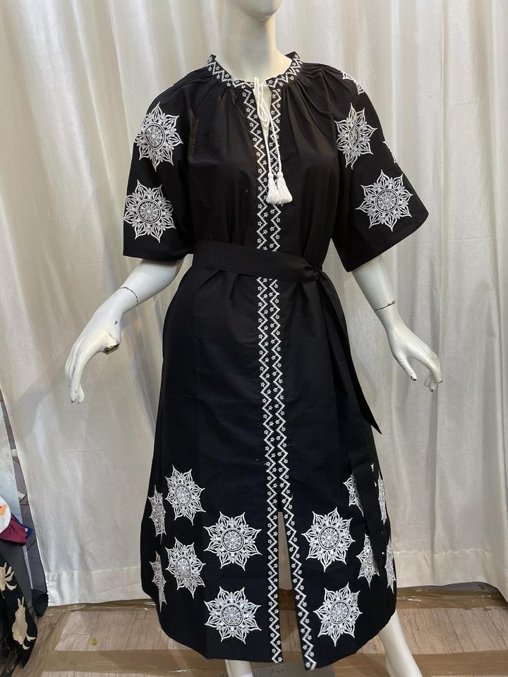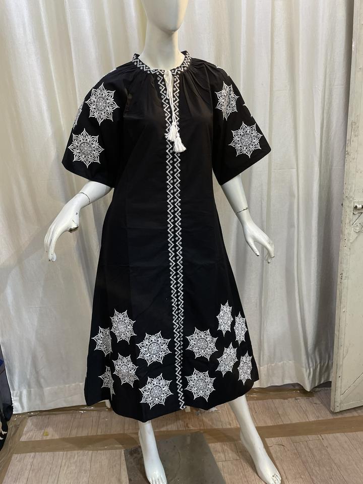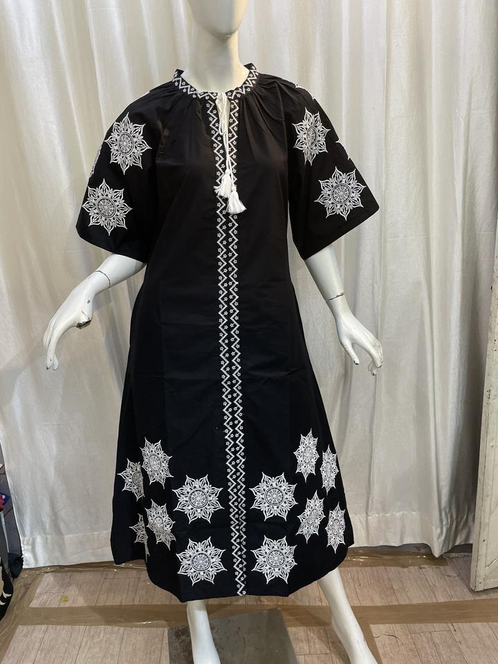 Stylish Women's Designer Long Maxi Casual Dress Ukrainian Western Party Wear Machine Embroidered Short Sleeves 100% Cotton