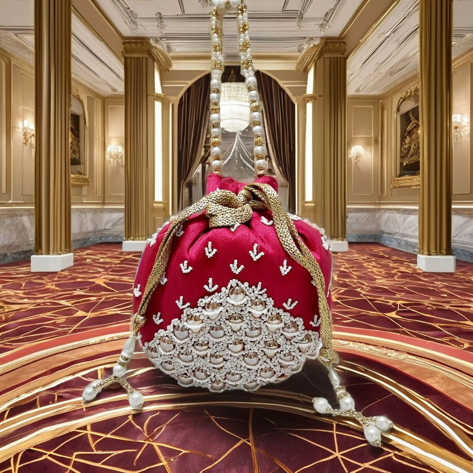 กระเป๋าทรงถังผ้าไหมหูหิ้วลูกปัดสีทองหรูหราสำหรับผู้หญิงมีสไตล์แฟชั่นชุดปาร์ตี้ที่มีดีไซน์พอตลีอ่อน