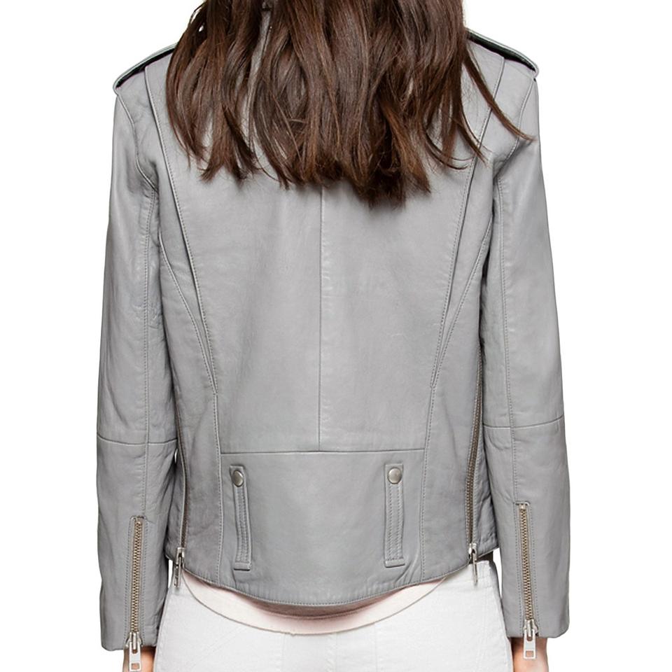 แจ็กเก็ตหนังแท้แบบใหม่สำหรับผู้หญิงเสื้อแจ็คเก็ตหนังลายสก๊อตแบบเข้ารูปมีซิป