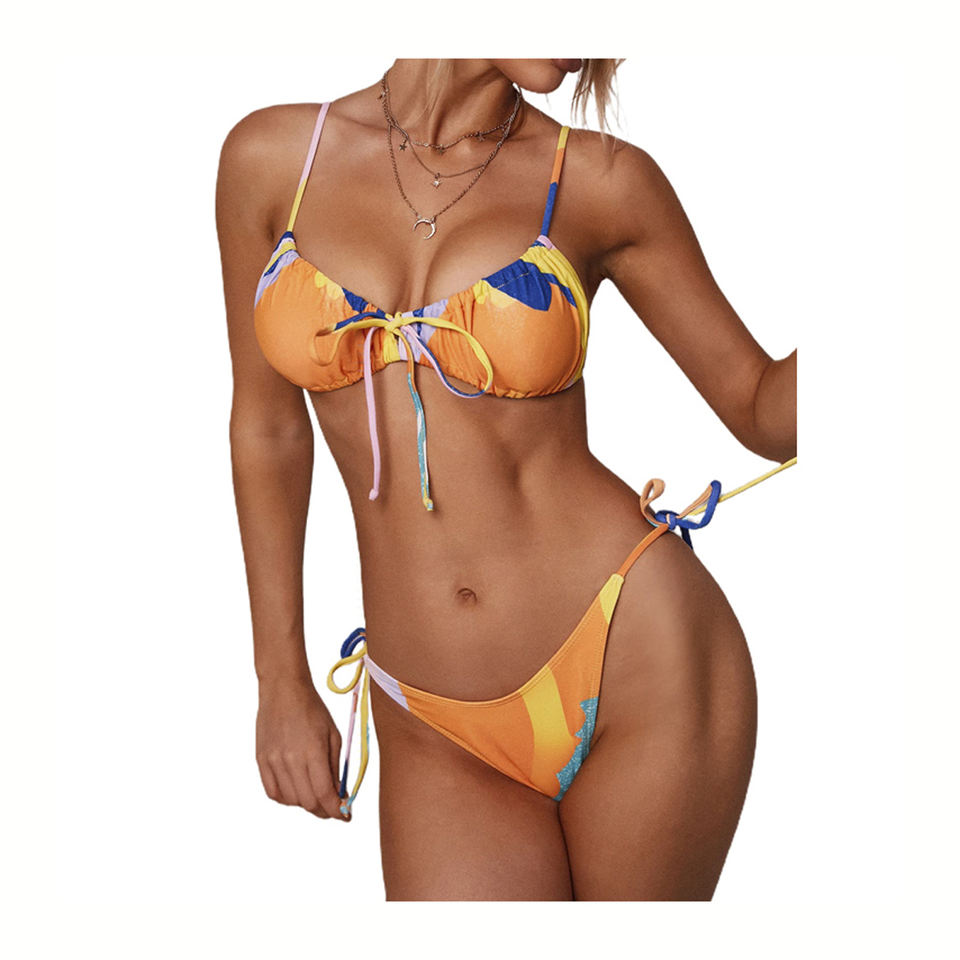 Stylish Women's Sequined Print Swimwear Collection-Premium Spandex/Polyester Fabric 2 Piece Set One-piece Cheeky Bottom Front