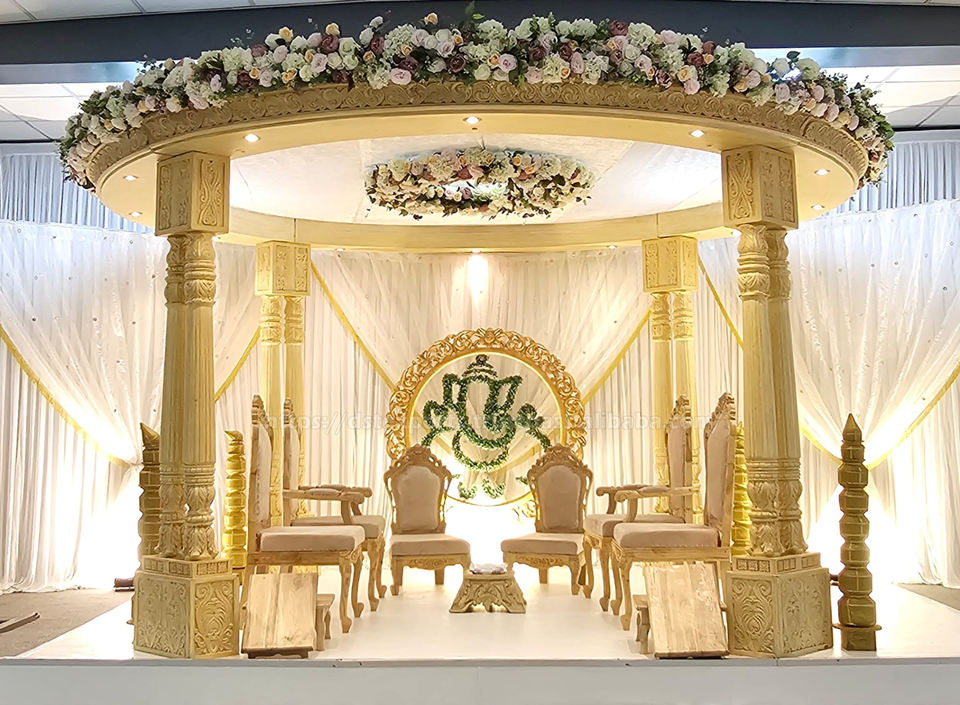 มณฑปงานแต่งงานสไตล์ไม้สุดหรู ซื้อชุดมณฑปงานแต่งงานอินเดียสุดอลังการ ผู้ผลิตมณฑปตกแต่งแบบดั้งเดิมจากสหราชอาณาจักร