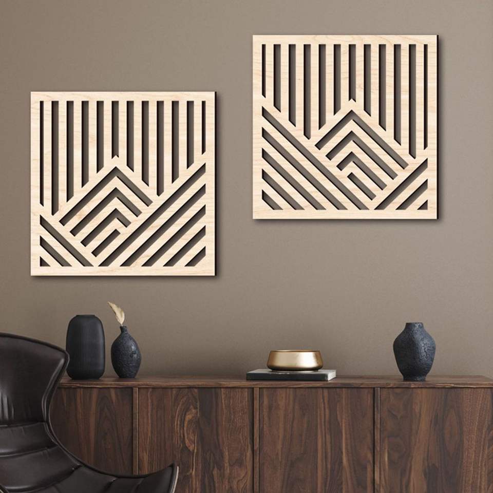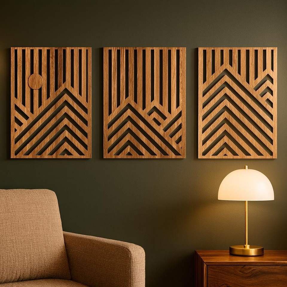 งานตกแต่งผนังไม้ MDF ทันสมัย ศิลปะตกแต่งผนังห้องนั่งเล่นสุดหรู พร้อมป้ายไม้