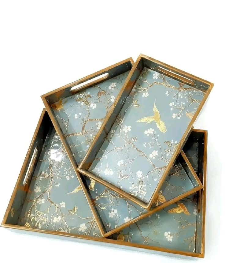 ถาดเสิร์ฟไม้มีสไตล์พร้อมผิวเคลือบเรียบเหมาะสำหรับใช้ในชีวิตประจำวันและในโอกาสพิเศษที่บ้าน