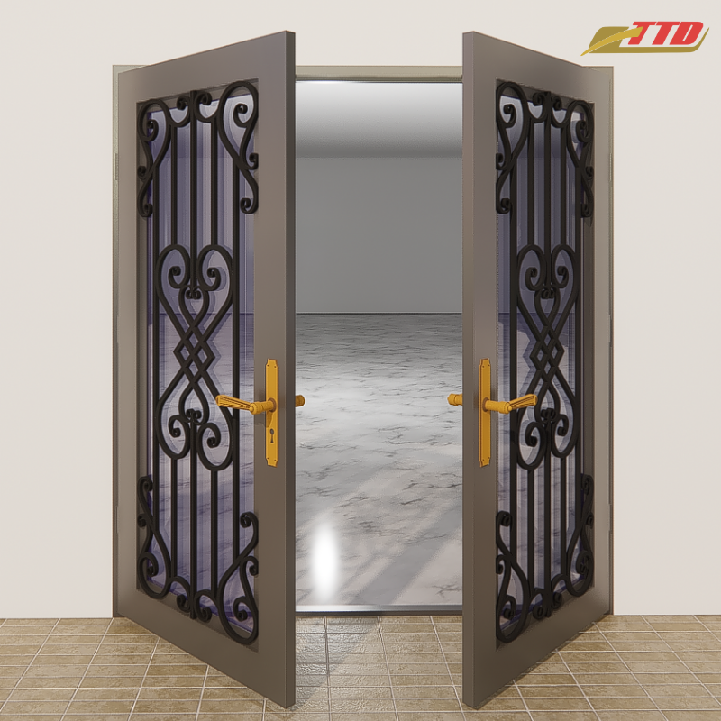 ประตูทางเข้าทำจากเหล็กดัดมีสไตล์สำหรับบ้านที่มีลวดลายหรูหราโครงเหล็กที่แข็งแรงกันน้ำได้ยาวนานความงามภายนอก